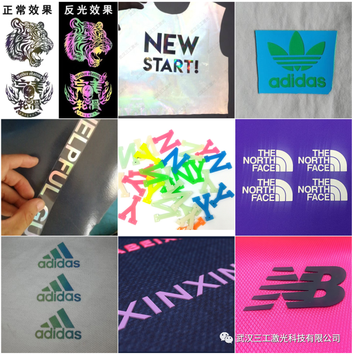 適用于運(yùn)動(dòng)服飾、休閑服飾、童裝、特種服飾、衣帽、鞋業(yè)、等行業(yè)的激光打標(biāo)和模切。PVC刻字膜、TPU刻字膜、PU亞光刻字膜、夜光刻字膜、鐳射軟金屬刻字膜、噴繪打印膜、反光刻字膜、植絨刻字膜、金蔥刻字膜、反光絲印膜、弱溶劑打印膜、裝飾膜、皮標(biāo)、布標(biāo)等材料。