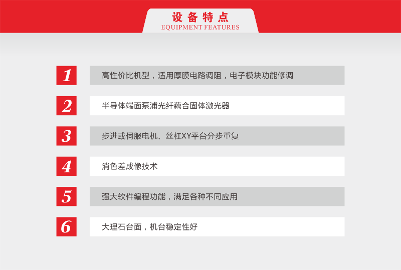 1. 加工速度快:激光調阻機采用高速實時測量及自動化程序控制技術,使得加工時間縮短至幾十毫秒,大大提高了生產效率。