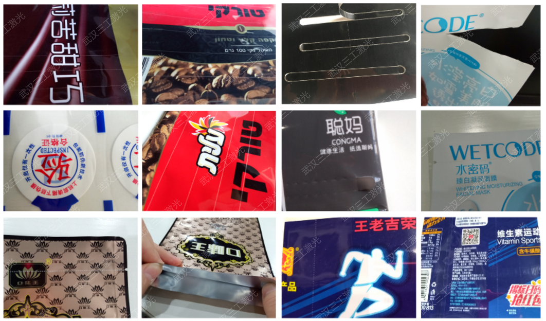 關(guān)于三工激光易撕線激光打孔機(jī)的應(yīng)用:主要用于不同材質(zhì)的塑料包裝袋 ,例如PE、PVC、PET等各種薄膜材質(zhì)。可用于飲品飲料、文化用品、五金工具、日用百貨、電子電器、金屬制品等行業(yè)的定量透氣孔、易撕口、熱封標(biāo)簽等激光標(biāo)刻。